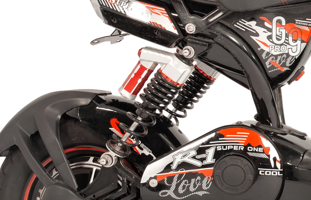 Xe được trang bị một cặp giảm sóc được đặt phía dưới yên xe, với khả năng chịu lực lên đến 120kg, có thể giúp xe vận hành một cách nhẹ nhàng qua các dạng địa hình. Giảm sóc dầu được phát triển dựa trên công nghệ giảm sóc sử dụng cho xe gắn máy, được cố dịnh vào thân xe thông qua 2 điểm tiếp xúc, giúp người sử dụng có thể dễ dàng tháo lắp theo nhu cầu sử dụng hoặc sửa chữa.